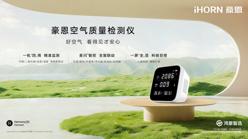 即日起,豪恩空氣質量檢測儀已在華為商城及華為鴻蒙智家門店同步發售。